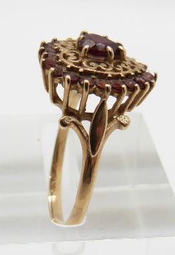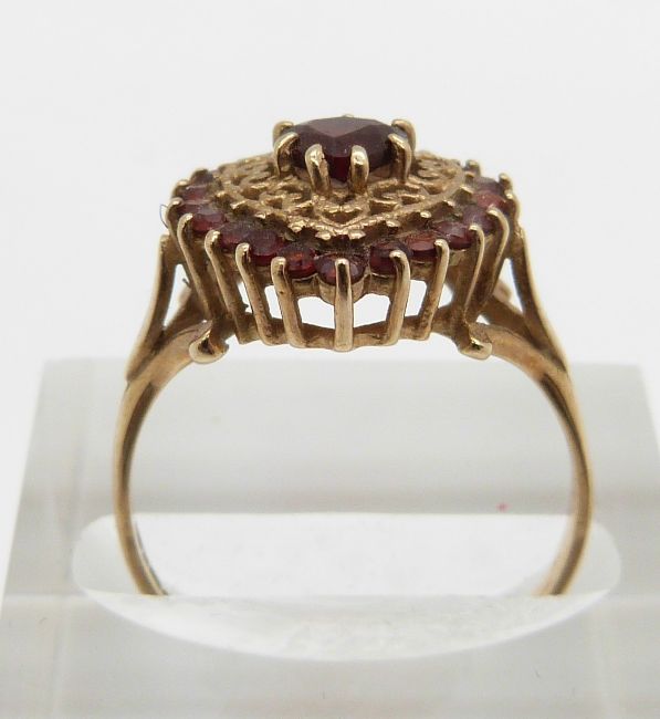 A 9ct gold ring set with garnets in a heart shape, 2.7g, size P