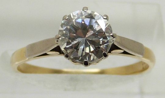 An 18ct gold ring set with a 1.5ct round brilliant cut diamond, 3.1g size Q
