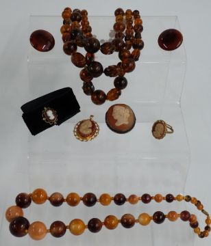 A collection of costume jewellery to include brooches, necklaces, paste necklace, filigree brooch, silver locket, etc