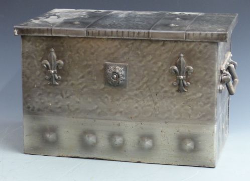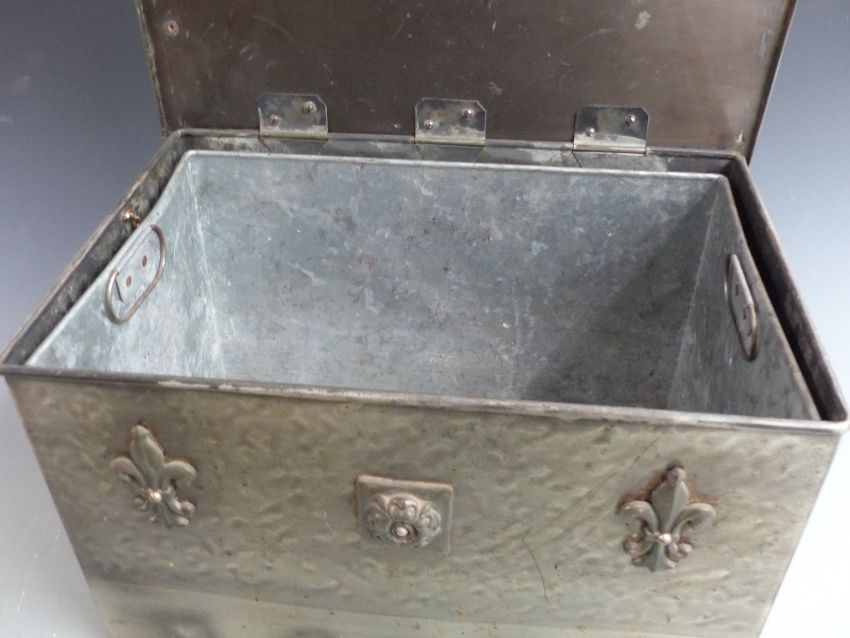 Arts and Crafts style polished steel twin handled coal box with lift out insert, width 49cm