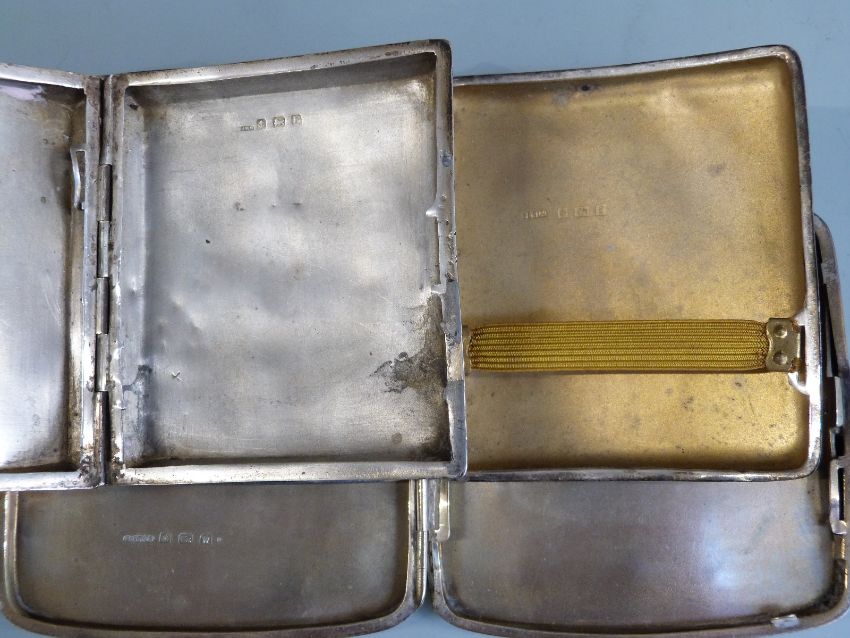 Three early to mid 20thC hallmarked cigarette cases with engraved decoration, each approximately 8.5cm long, weight 279g