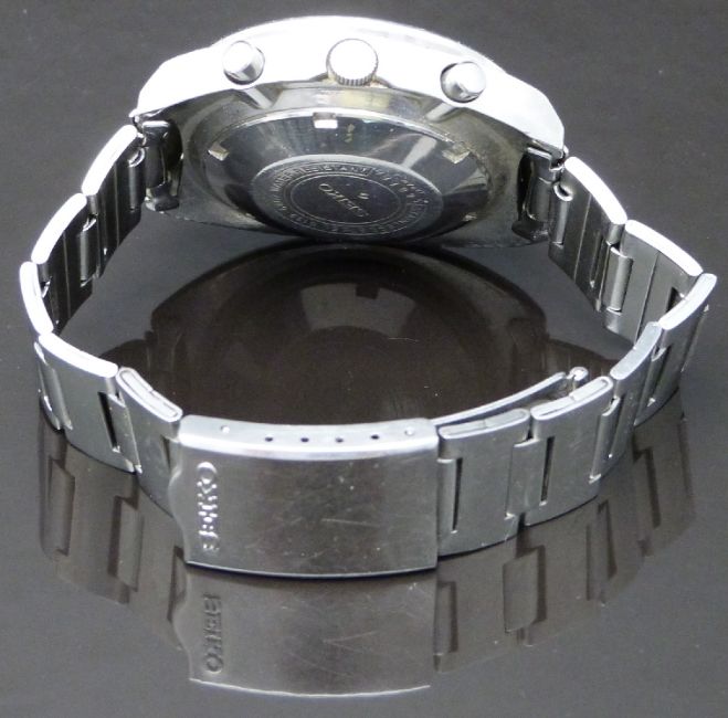 Seiko 'Pogue' gentleman's automatic chronograph wristwatch ref. 6139-6002 with blue dial, blue and red 'Pepsi' bezel, day and date apertures, inset subsidiary seconds dial, stainless steel case and 17 jewel 6139B movement, on stainless steel bracelet, case diameter 41mm, serial number 380111.