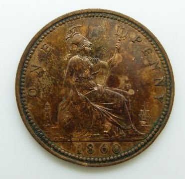 Victorian 1860 young head bronze penny BB; NEF with lustre