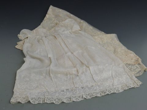 Late 19th/20thC christening gown with embroidered and lace decoration