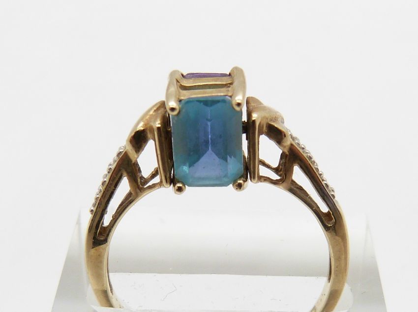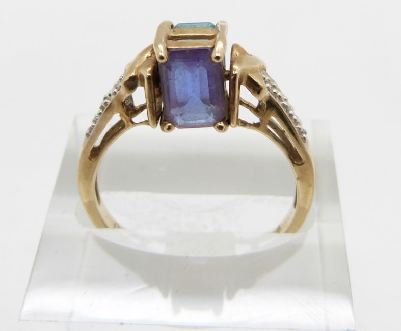 A 9ct gold ring set with an amethyst and blue topaz, 3g, size O