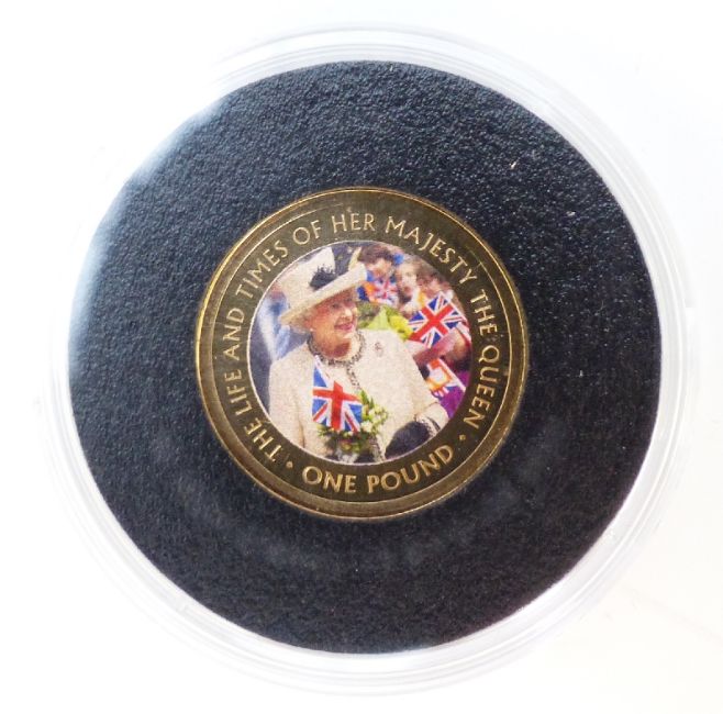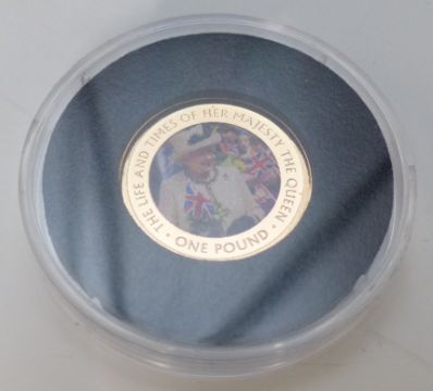 Heirloom Coins, 'The Life and Times of Her Majesty the Queen' 22ct gold proof photographic commemorative one pound coin, 8gms cased with certificate