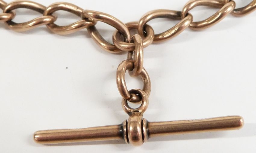 A 9ct rose gold Albert/ watch chain, 34g, 38cm long