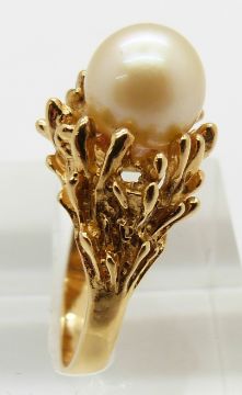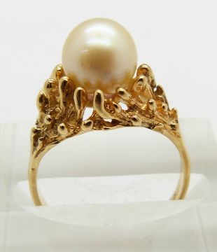 A 14k gold ring set with a pearl in a textured setting, 3.1g, size K