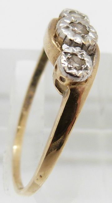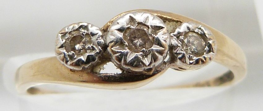 A 9ct gold ring set with diamonds in a platinum setting, 1.3g, size Q