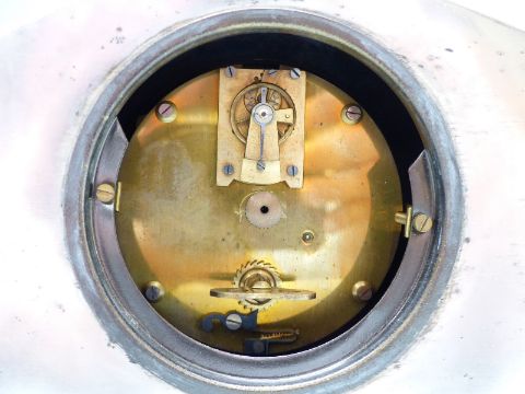 French late 19th/early 20thC French mantel clock in silver plated case,. 12.5cm tall