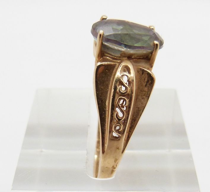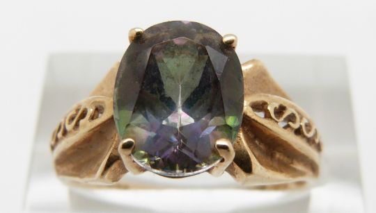 A 9ct gold ring set with mystic topaz, 3.2g, size P and a 9ct gold ring set with diamonds, 2.3g, size P