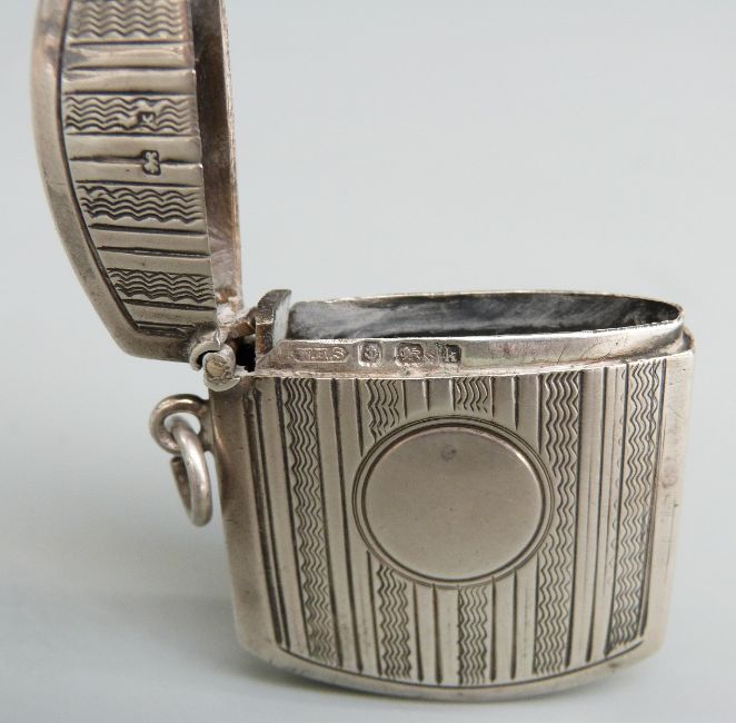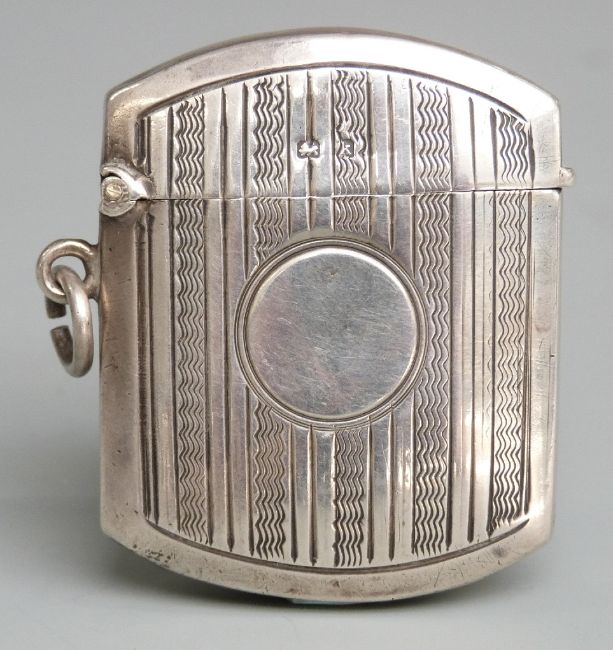Edward VII hallmarked silver vesta case with curved ends, Birmingham 1909 maker William Henry Sparrow, length 48mm weight 23g