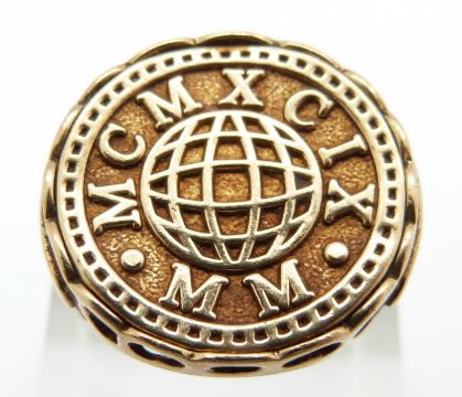 A 9ct gold ring with millennium panel, 4.9g, size Y