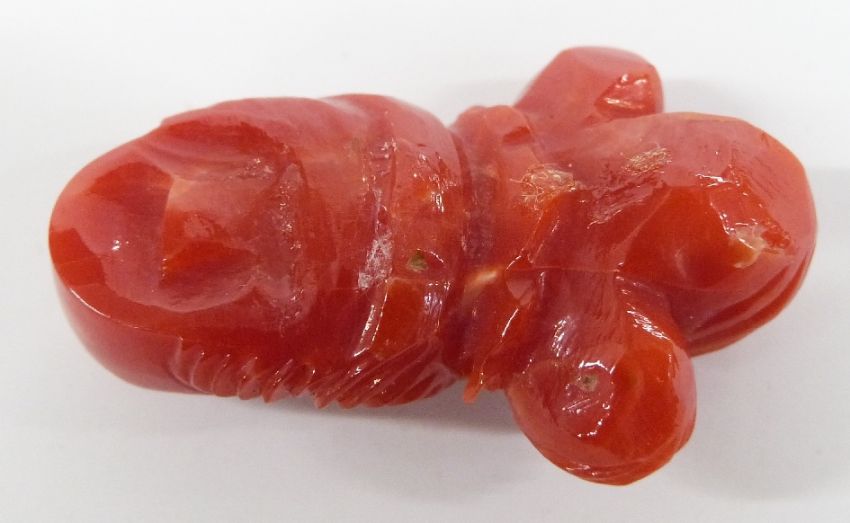 Chinese carved coral figure in the form of a lady's head, 3.5cm long.