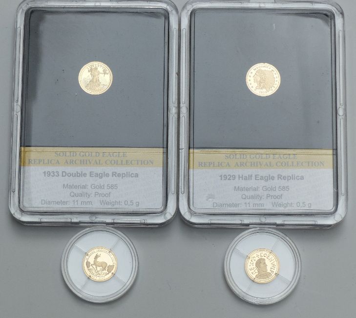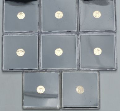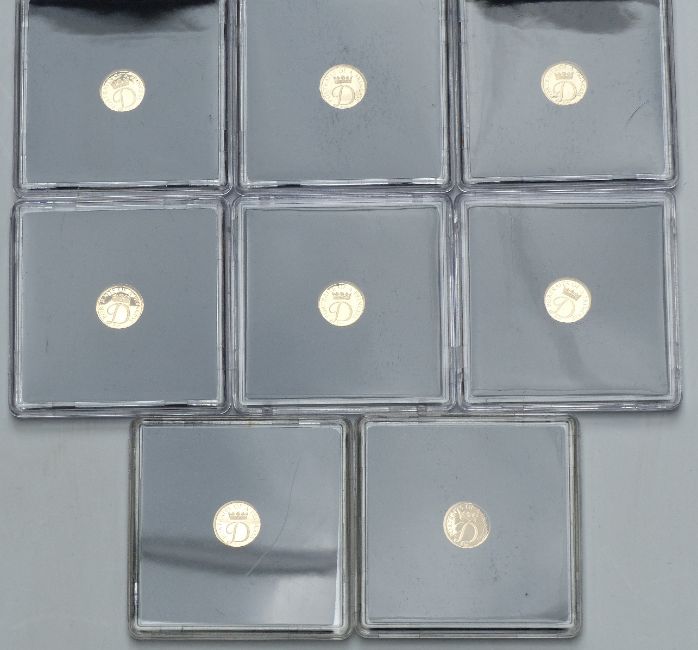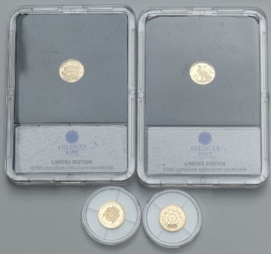 Eight miniature gold coins 'Portraits of  a Princess', each 585 coin 0.5g, together with a further four examples, USA eagles etc 12 coins in total, in two deluxe cases, with certificates