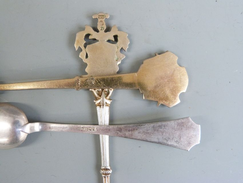 Ten various white metal souvenir spoons, mostly marked 800 but including a Swedish example and others, weight 115g all in
