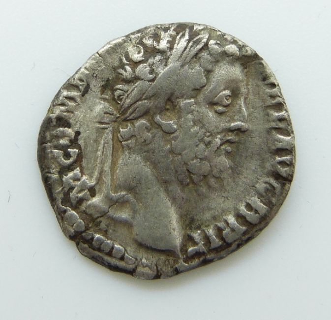 Commodus AD 177-192 Roman silver denarius, laureate bearded head, obverse COS V (consulship fifth time year 186) TRP XIIII (Tribunician power 14th year AD 188) reverse - minted AD 188, VF