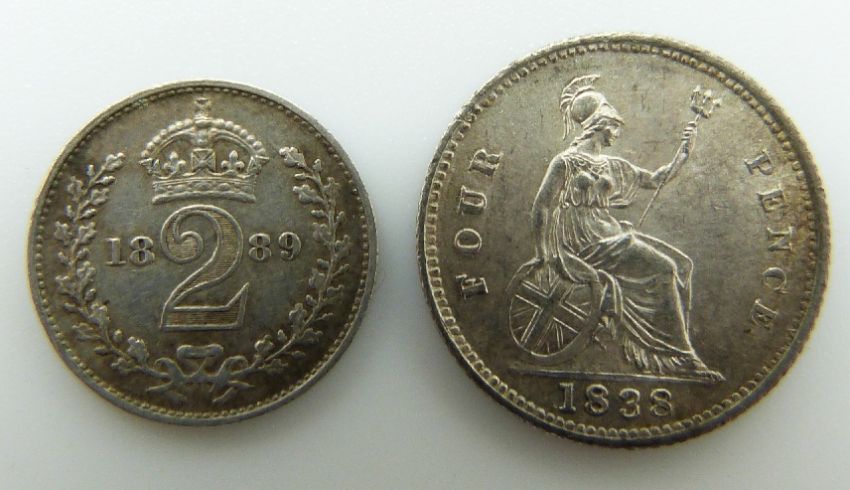 Victorian 1838 young head fourpence, uncirculated, together with an 1889 Jubilee head Maundy twopence EF