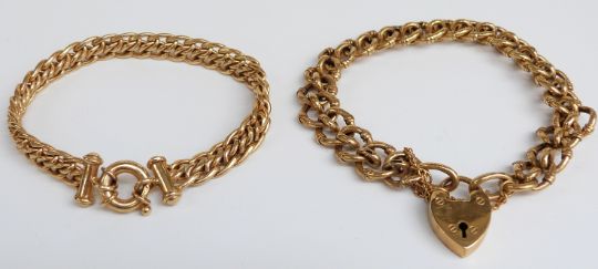 A 9ct gold bracelet (9.5g) and another gold plated bracelet
