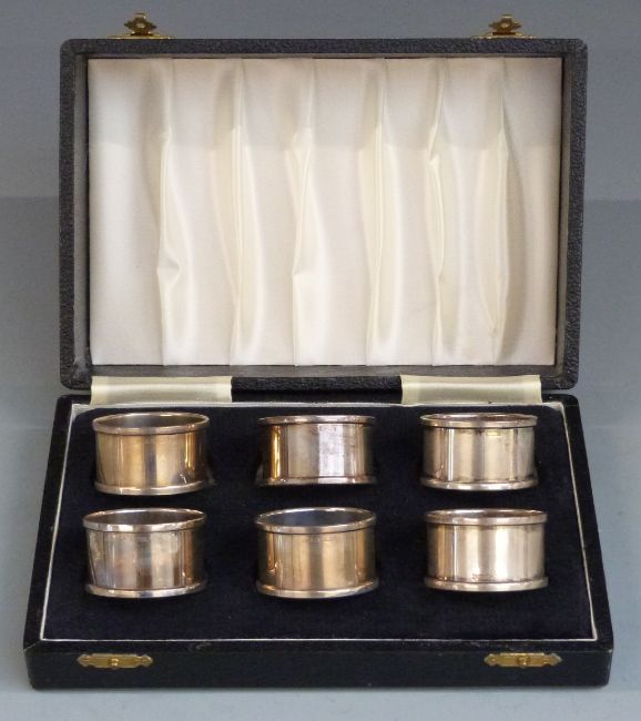 Set of six hallmarked silver napkin rings, Sheffield 1979 maker's mark H.G & S, weight 95g