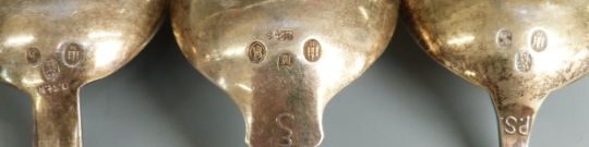 Three Danish white metal and enamel spoons, one 1931 maker Christian F Heise, another 1934 maker Johannes Siggaard, the last 1937 maker Johannes Siggaard, length 15.5cm weight 140g