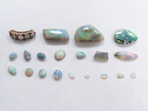 Three opal cabochons and a moonstone cabochon