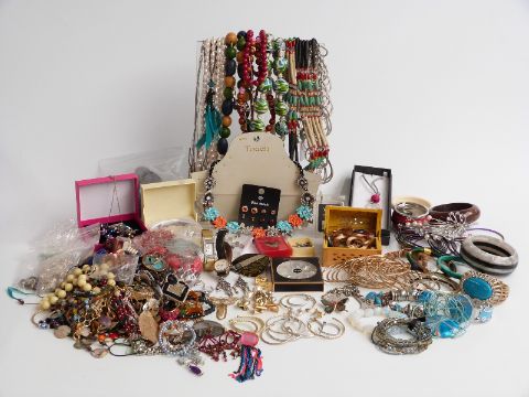 A collection of costume jewellery including quartz bracelet, necklaces, etc