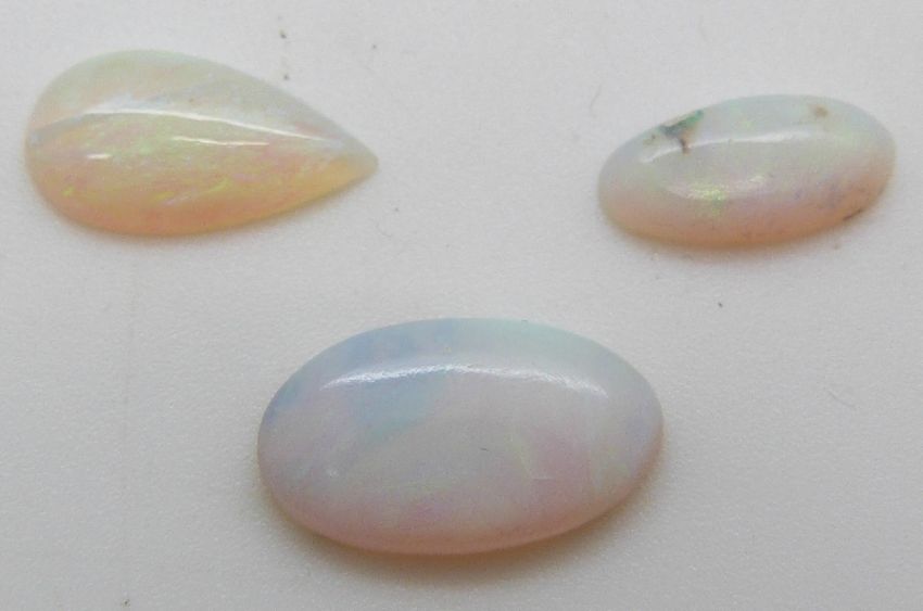 Two oval opal cabochons approx 2ct & 0.7ct and a pear cut cabochon approximately 1.5ct