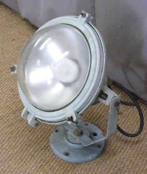 A cast aluminium industrial/maritime/naval floodlight with watertight seals, H65cm