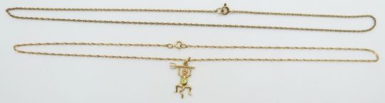A 9ct gold necklace 1.9g, 22cm drop and a 9ct gold chain 1.3g, 20cm drop