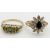 A 9ct gold ring set with a sapphire and diamonds and a 9ct gold ring set with emeralds, 4g,