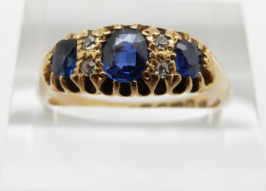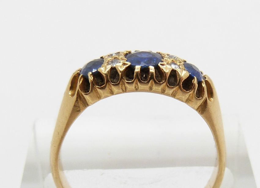 Edwardian 18ct gold ring set with sapphires and diamonds, Chester 1907, 4.3g, size P