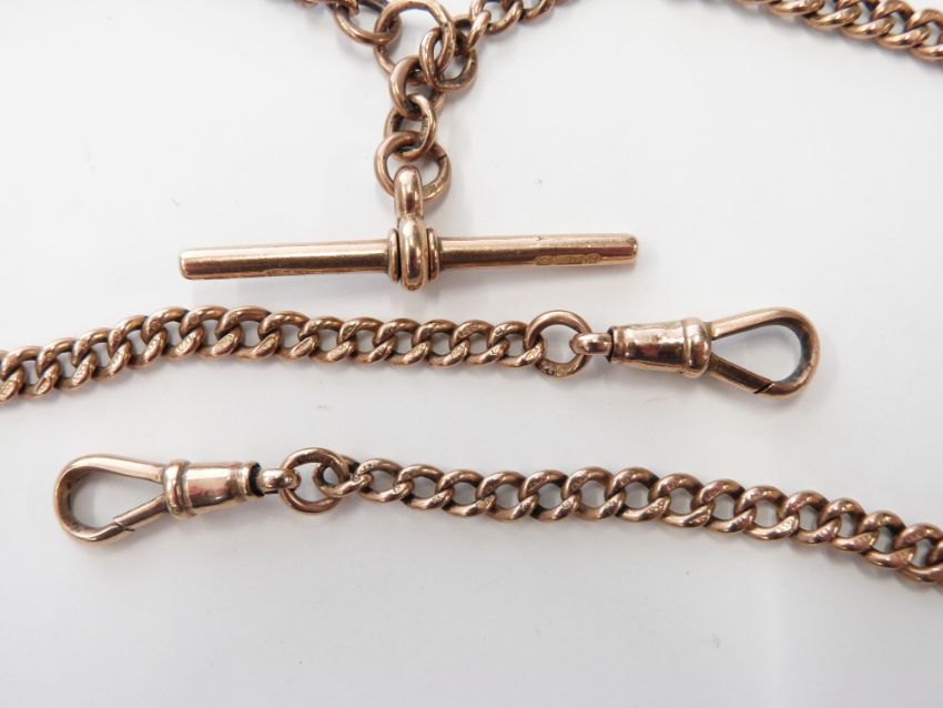 Victorian 9ct rose gold double Albert, 30.8g, 42cm