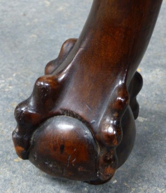 A mahogany extending dining table and eight chairs, all raised on ball and claw feet, W58 x H73 x D107cm