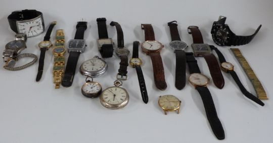 Eighteen various ladies and gentleman's wrist and pocket watches including a silver pocket watch, Police, Accurist, Ice etc.
