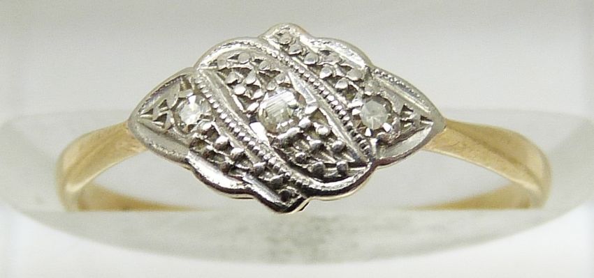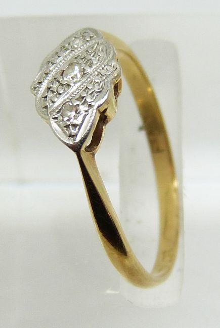 An 18ct gold ring set with diamonds in a platinum setting, 1.4g, size J