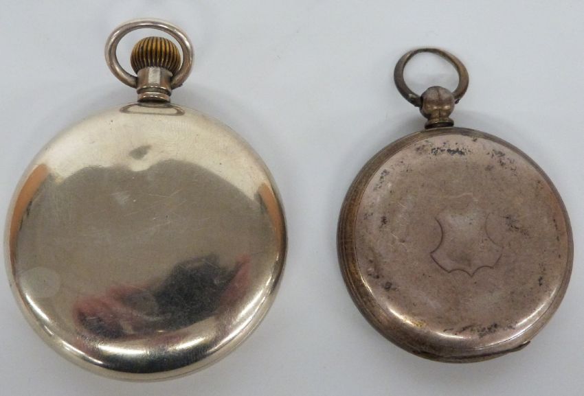 Two open faced pocket watches comprising one Kay & Co Ltd Kays 'Standard' Lever the other 'Fine Silver' both with subsidiary seconds dials, blued hands, black Roman numerals and white enamel dials, largest case diameter 55mm.