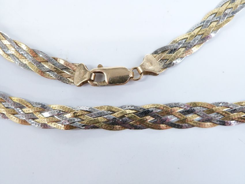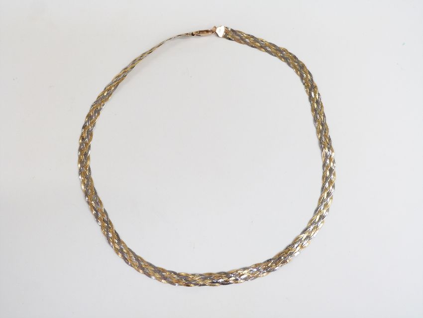 A 9ct gold bi-coloured plaited necklace, 9.8g