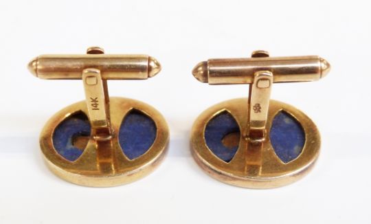 A pair of 14ct gold cufflinks set with lapis lazuli, 11.6g