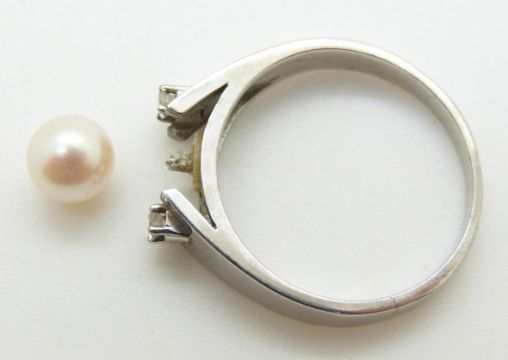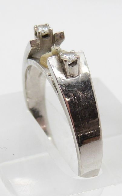An 18ct white gold ring mount set with two diamonds, 5g, size R