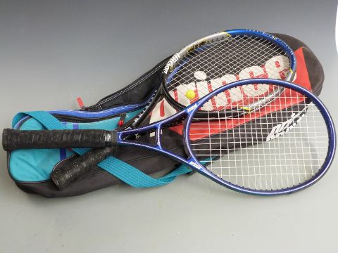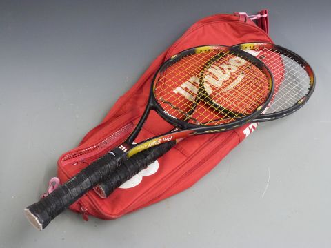 Collection of Wilson tennis racquets, most modern carbon/graphite