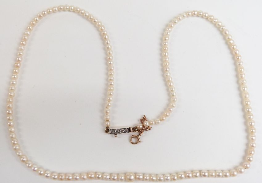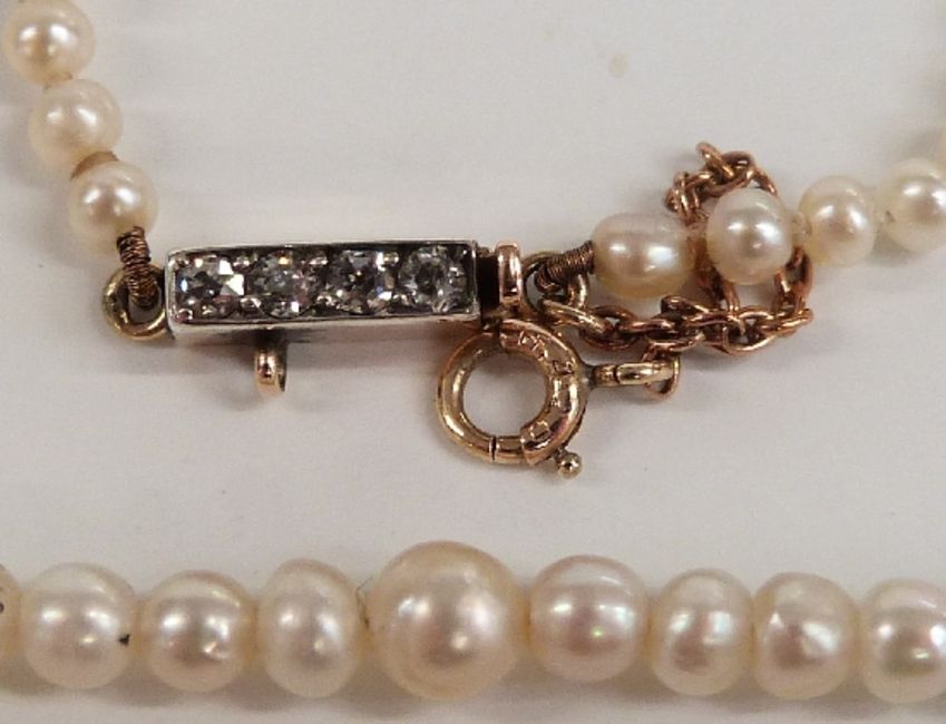 A single strand of natural pearls with diamond clasp, with Gem & Pearl Lab certificate