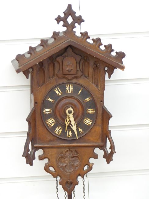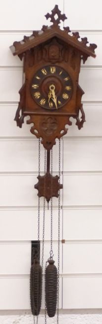 Beha early 19thC Black Forest cuckoo clock, label verso 'Camerer, Kiss & Co, 2 Broad St, Bloomsbury, London W'