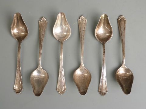 Set of six American white metal grapefruit or similar spoons, marked Sterling with Reed and Barton American silver marks, length 15cm weight 185g