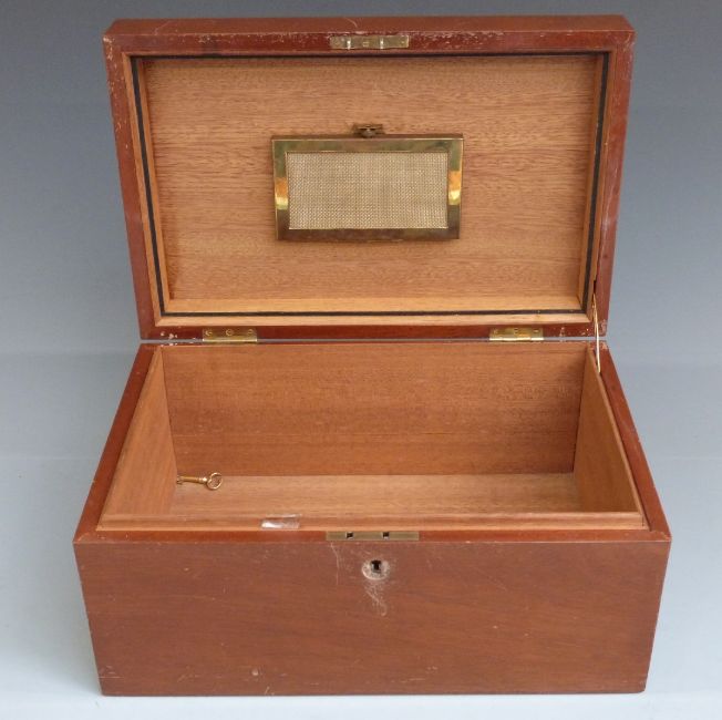 20thC inlaid mahogany humidor, width 33cm