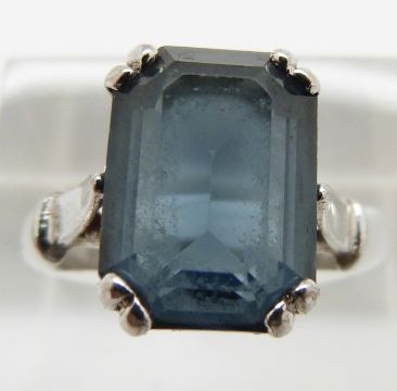 A silver eternity ring set with blue and clear sapphires, two silver rings,14.4g, and another ring