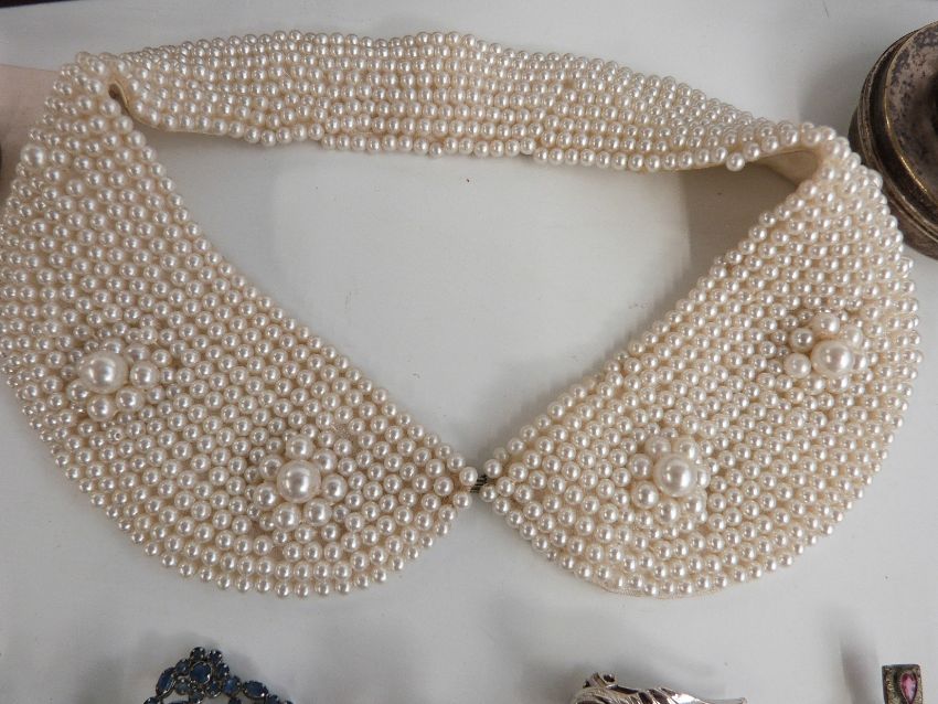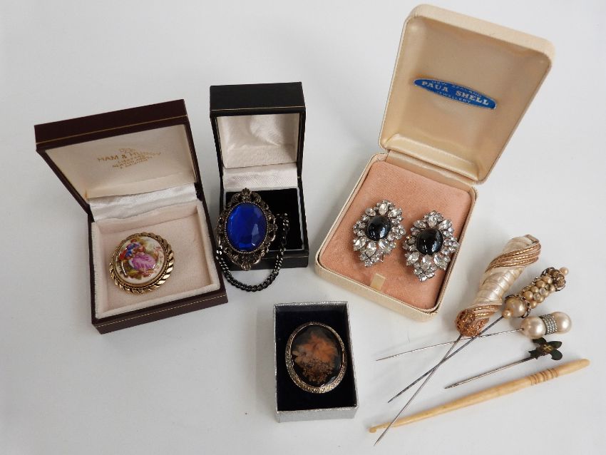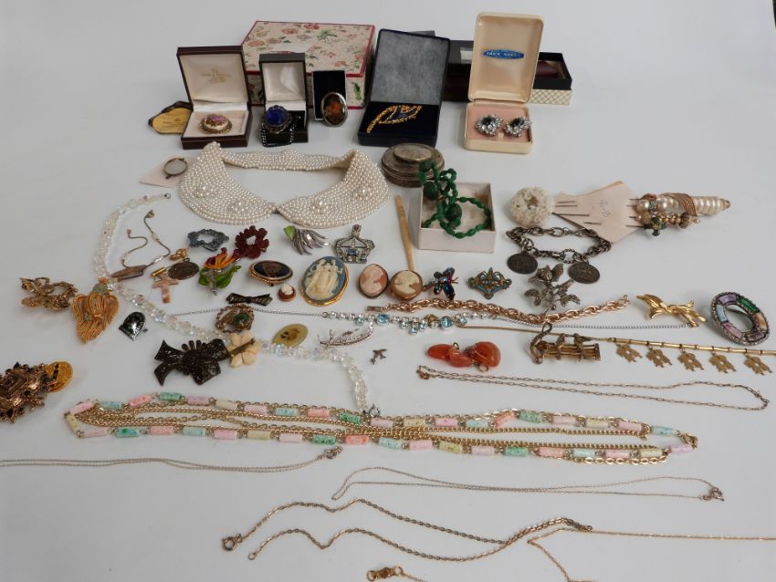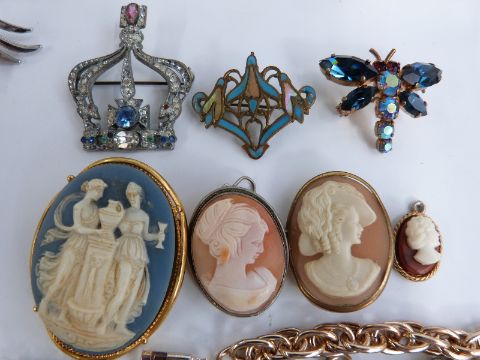 A collection of costume jewellery, brooches, cameos, beads etc