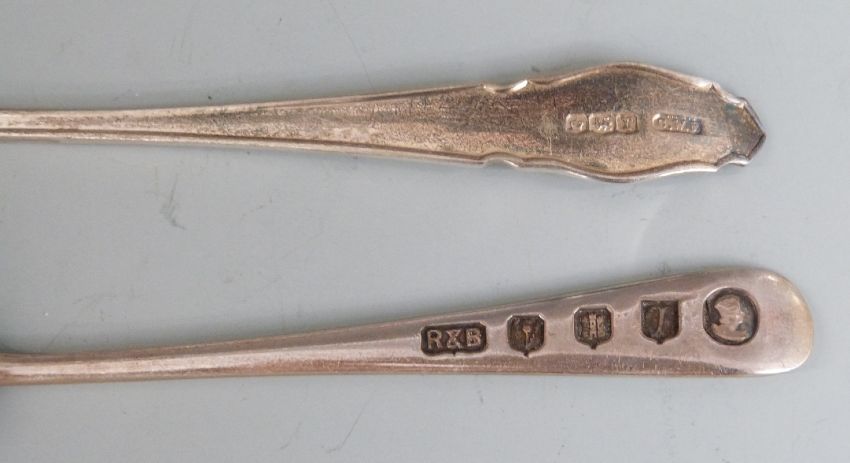 Two cased sets of hallmarked silver teaspoons, one London 1934 the other Elizabeth II coronation with examples of each assay office, weight of all spoons 154g