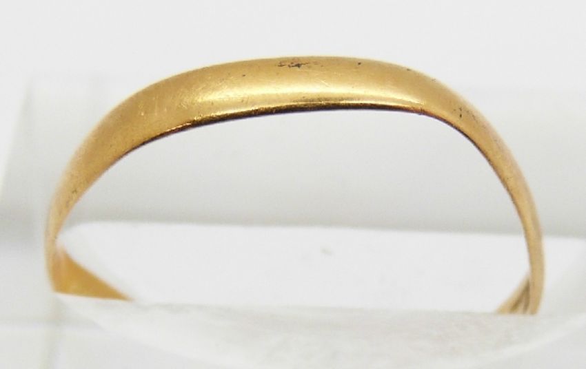 Victorian 22ct gold wedding band, Birmingham 1883, in original Stroud box, 1.2g, size N