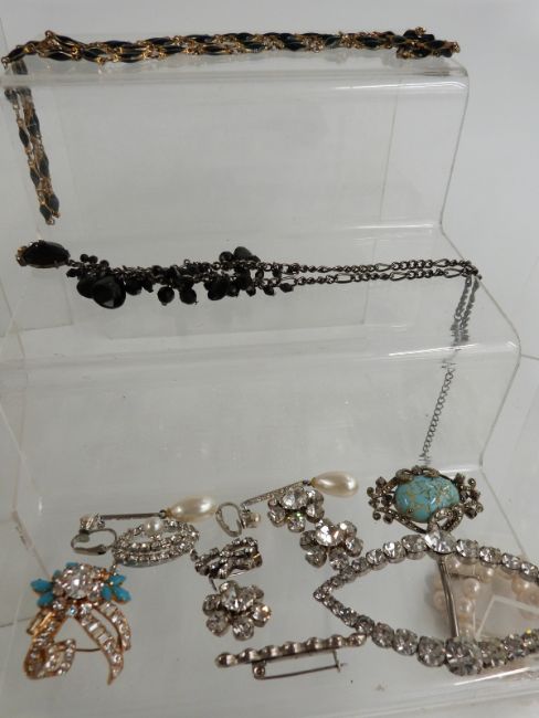 A collection of costume jewellery including Grosse brooch, necklaces, paste jewellery etc